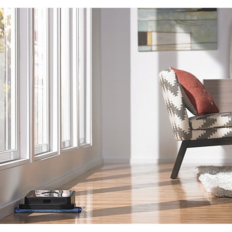 Конечно, Braava 380 осуществляет и сухую уборку: собирает с пола пыль.